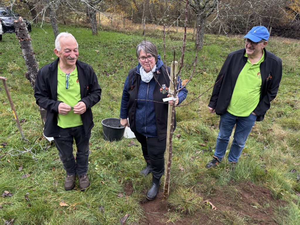 Die "Baumpflanz-Challenge 2025" ist eine Social-Media-Aktion, bei der Gruppen, Vereine oder Organisationen sich gegenseitig nominieren, um einen Baum zu pflanzen. Ziel ist es, den Teamgeist zu fördern und gleichzeitig einen Beitrag zum Klimaschutz zu leisten, mit der Regel, dass die nominierte Gruppe einen Baum pflanzt oder der nominierenden Gruppe ein "Grillen" ausrichtet, Getränke spendiert oder eine andere Art von Überraschung bietet. Auch wir waren dabei, nominiert von der „Physiotherapie Christina Lamm“ in Orscholz. Wir haben uns für die Baumvariante entschieden und auf dem Gelände unserer Freunde vom Obst & Gartenbauverein den Winterapfel 'Topaz' - Malus gesetzt.